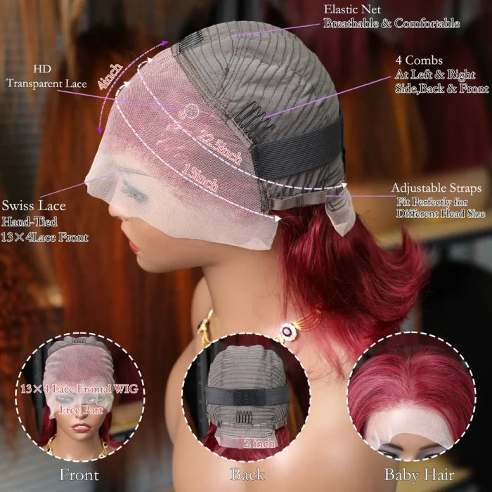 Burgundy Straight Bob 13x4 Transparent Lace Front Human Hair Wig