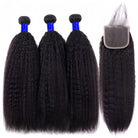 Kinky Straight Human Hair Bundles With 4x4 HD Lace Closure