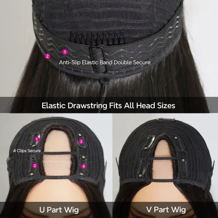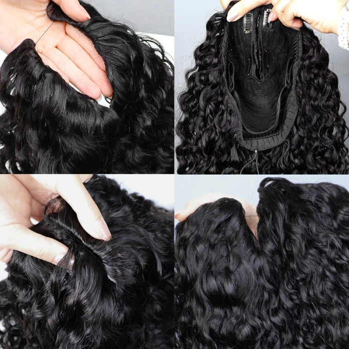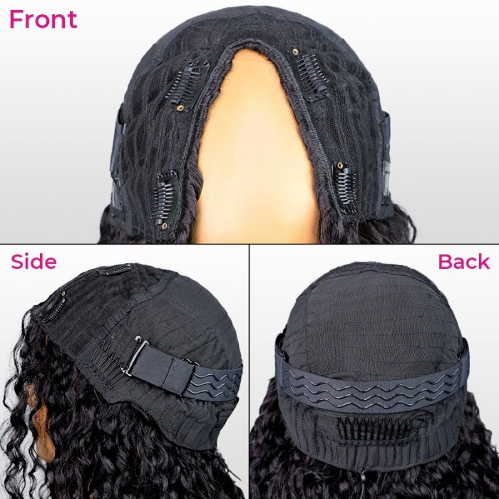 Clip & Go Burmese Curly U/V Part Human Hair Glueless Human Hair Wigs