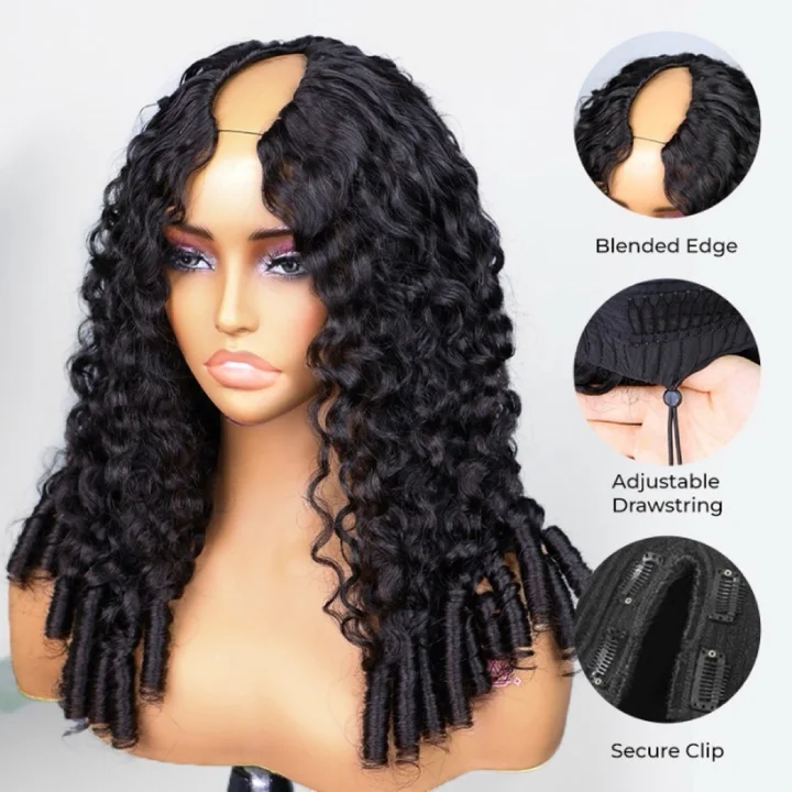 Clip & Go Burmese Curly U/V Part Human Hair Glueless Human Hair Wigs