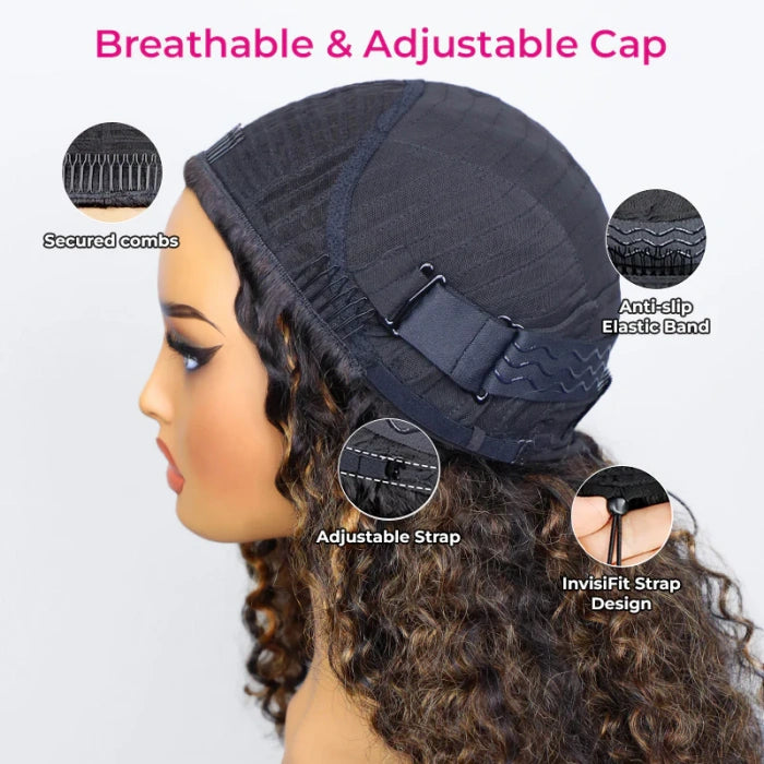 Highlight Jerry Curly Half Glueles Human Hair Wig – Easy-to-Wear