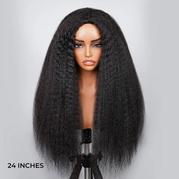 Kinky Straight Half Wig Seamless Flip Over Wig No Lace InvisiFit Strap Wear Go Glueless Human Hair Wig