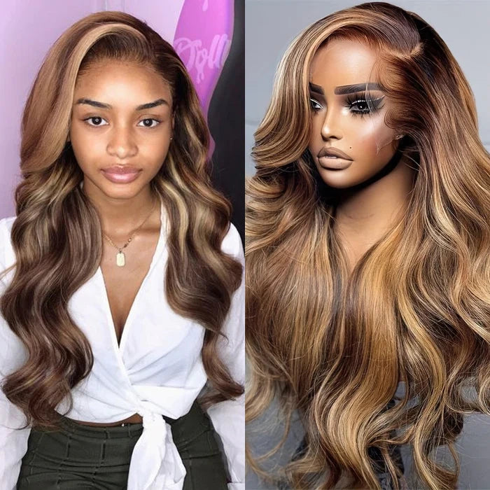 4/27 Highlight Color Body Wave 5X5 13x4 13x6 HD Lace Human Hair Wig
