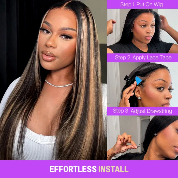 13x6 Three-Go™ Balayage Highlight Glueless Wigs Silky Straight human hair wig