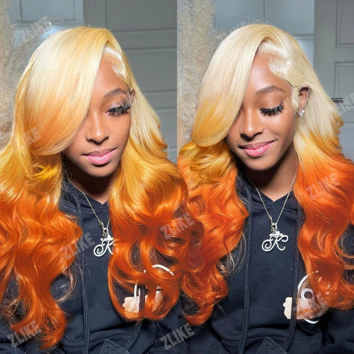 613 Blonde ombre ginger Color Body Wave 13x4 13x6 HD Lace Full Frontal Human Hair Wig