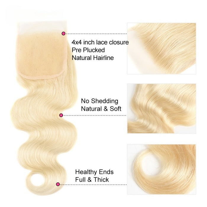 613 Blonde 4X4 HD Lace Body Wave Human Hair Closure