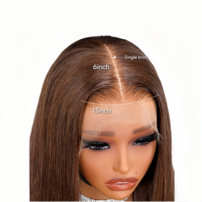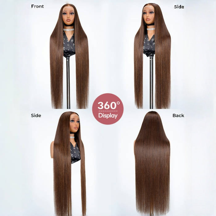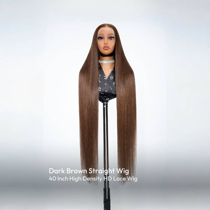 Long Inch #Dark Brown Straight 13X4 13x6 HD Lace Full Frontal Human Hair Wig 200% Density 32”-40”