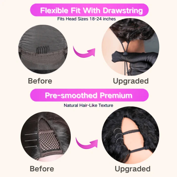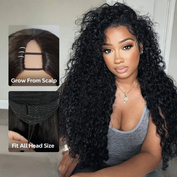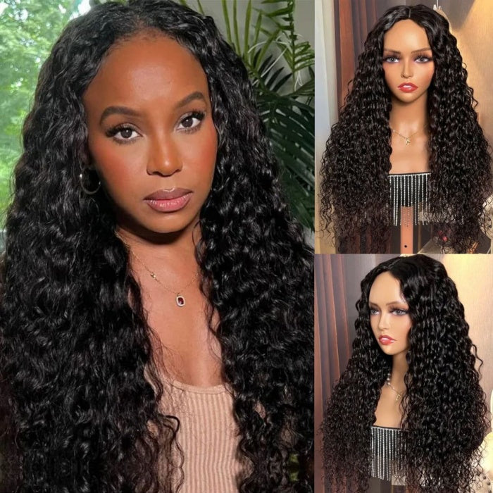 Layered Cut Water Wave U/V Part Human Hair Glueless Wig Clip & Go